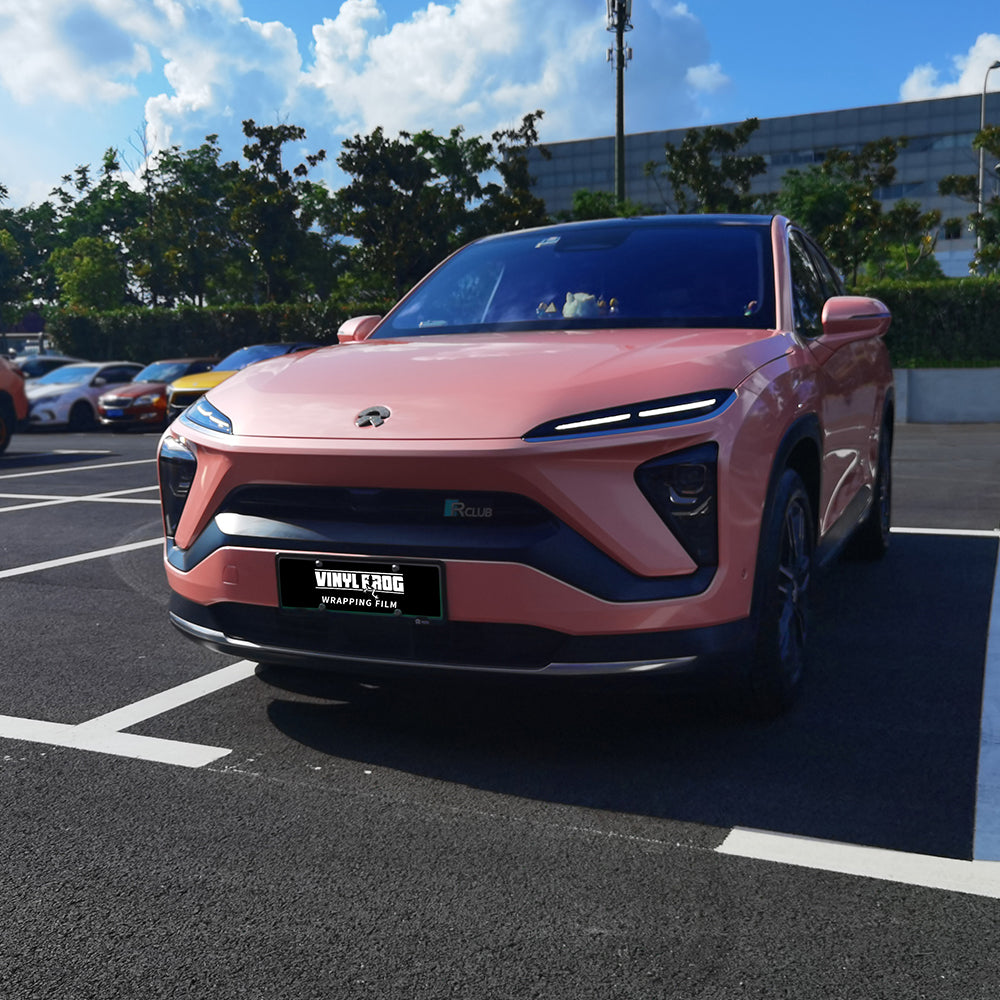 Features Super Glossy Taycan Pink Vinyl Wrap